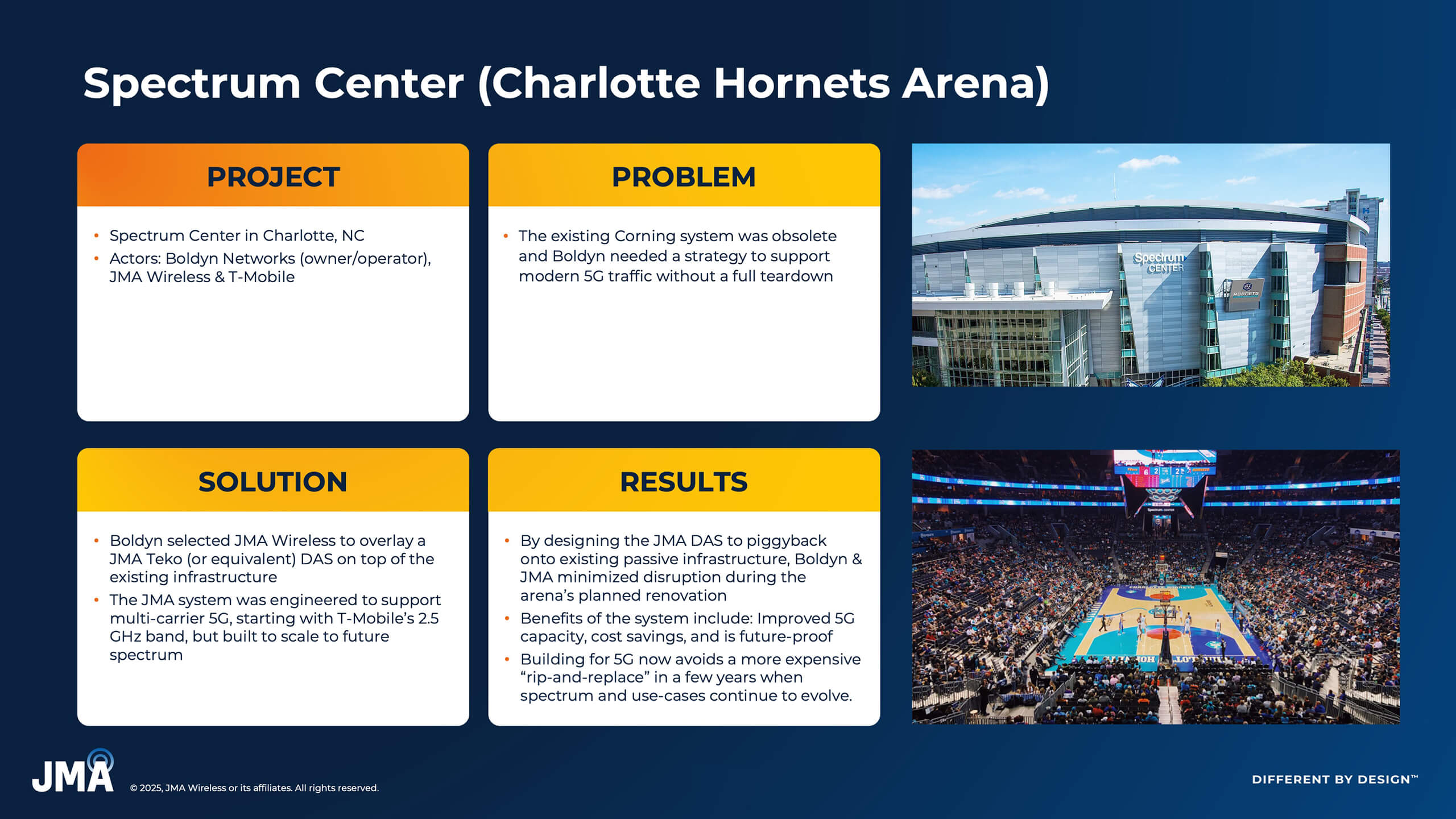 The JMA Wireless platform is 5G-ready and the most sustainable solution on the market, with many features that make it the DAS of choice when considering support for future networks. Our platform delivers maximum performance, supporting multiple operators, with the flexibility to adapt coverage and capacity in any venue on an event-by-event basis.