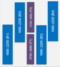 | Frequency bands, MHz | 1695-1880 | 1850-1990 | 1920-2200 |