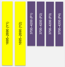 | Frequency bands, MHz | 1695-1880 | 1850-1990 | 1920-2280 | 2300-2690 |